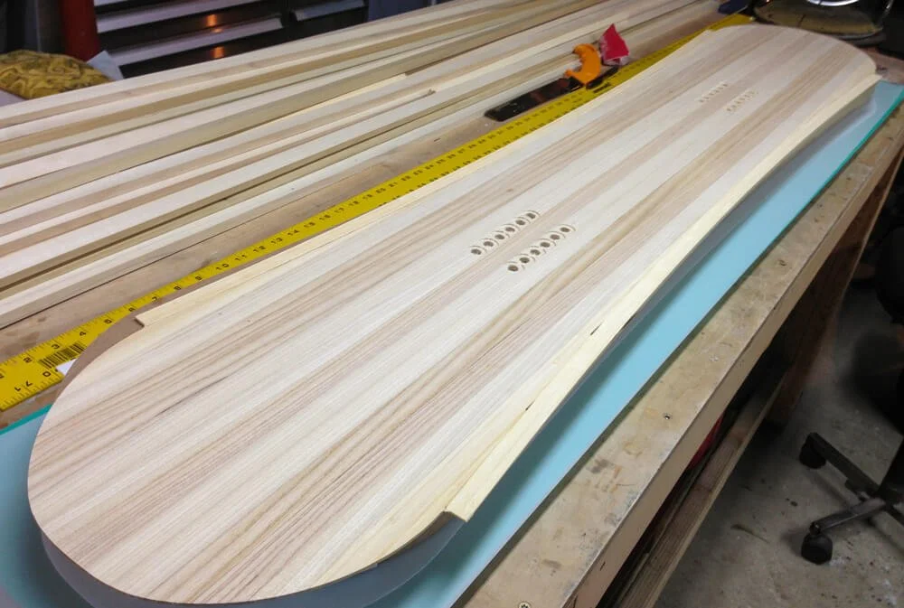 The first board popped out of the press and exceeded expectations. The bamboo core was great for soaking up bumps and ruts. It also carved groomers like it was on rails. It was easy to layup too and that was good for production, but overall the board was too heavy, you really noticed it hanging on your foot while stuck on the lift. It also lacked any kind of pop in its flex in it’s buttery flex pattern.