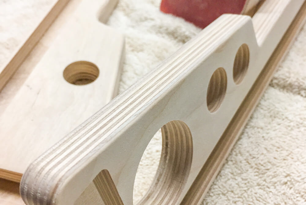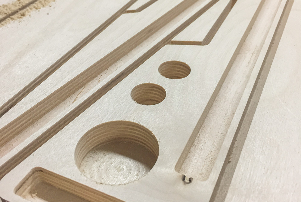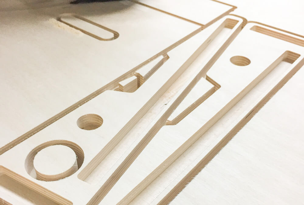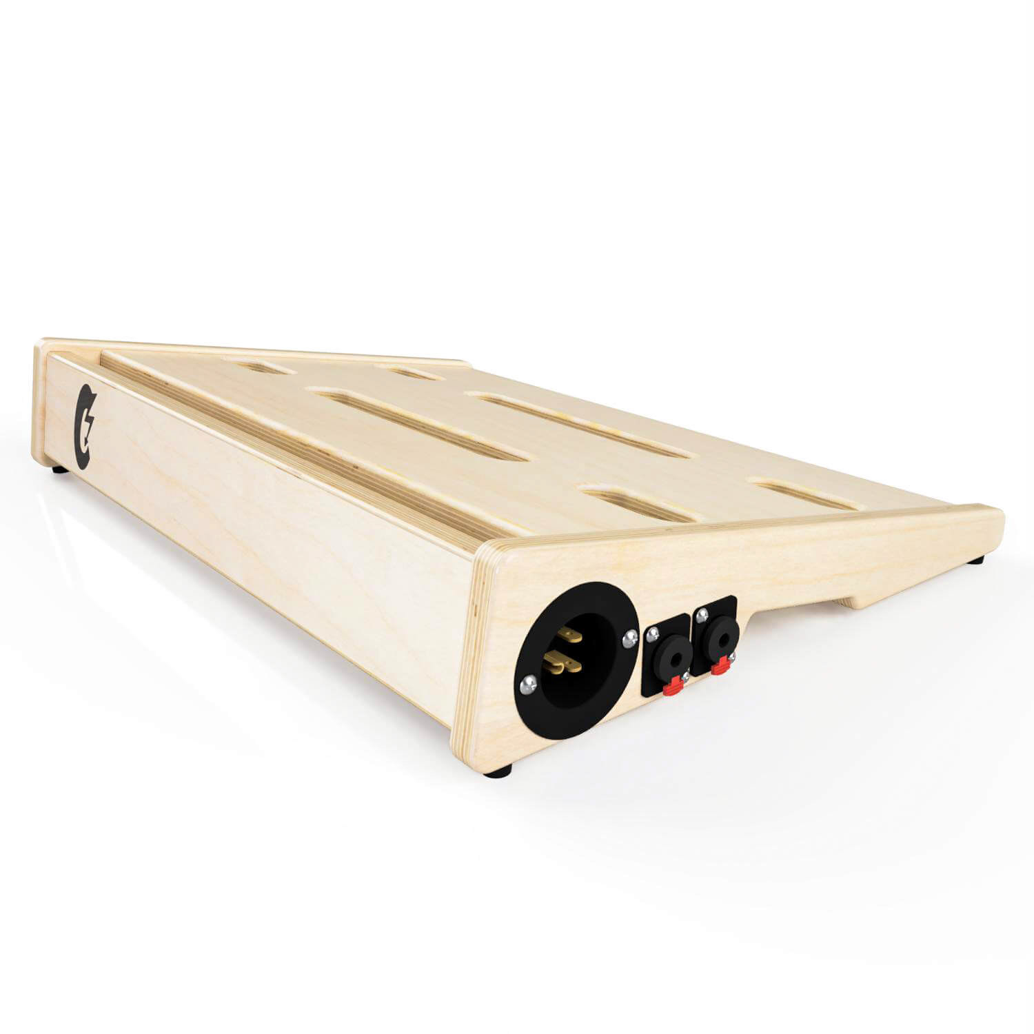 Baltic birch ply was the go to choice for this product. The qualities ply offers were perfect for this application. The over-all dimensions of this item can be customized easily to fit what the customer needs. The dimension that was the most critical was the angle at which the top of the board slopes. This is the area where the effect pedals are attached. This angle had to be comfortable and allow access to all areas of the board. The sides double as mounting locations for any number of jacks that can be requested upon ordering.